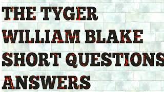 The Tyger By William Blake Short Questions Answers Youtube